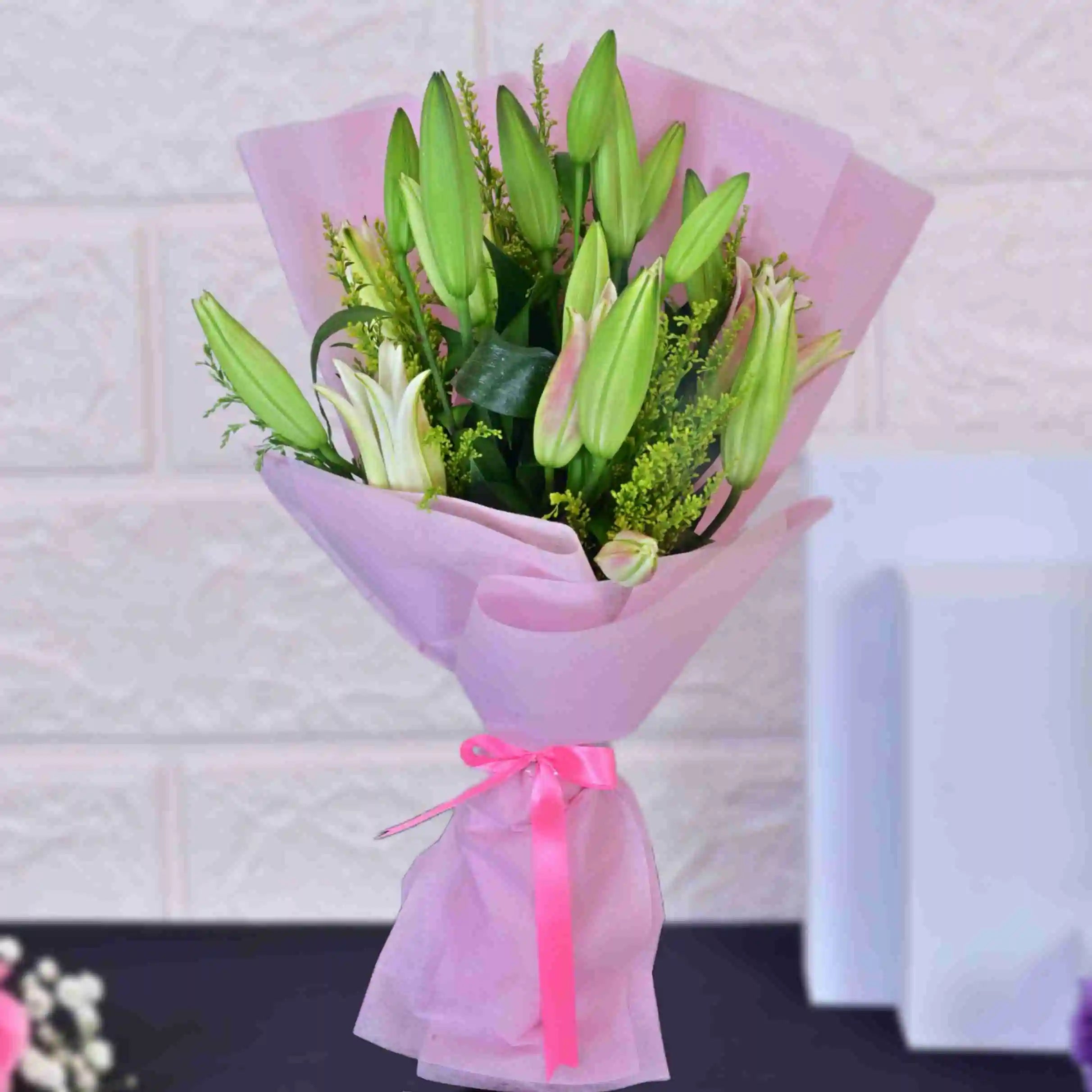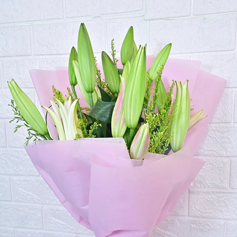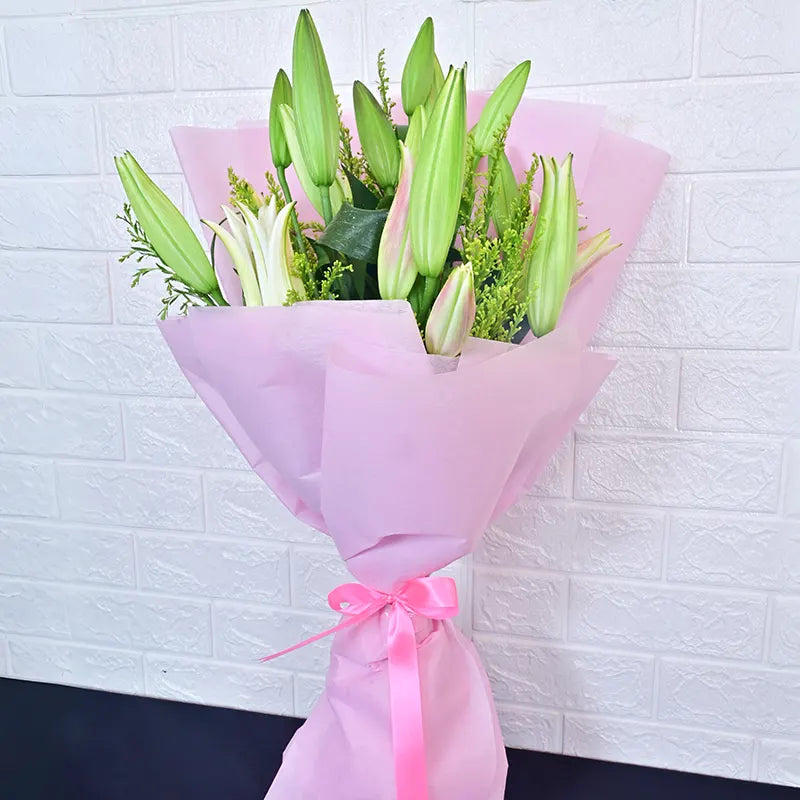 "May these lilies, embodying Lily's Beauty, fill your surroundings with their pure and graceful presence. Their elegant blooms and sweet fragrance bring a touch of serene loveliness to your day. Enjoy their exquisite charm."